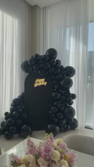 Perfect for milestone birthdays, black-tie events, or anyone who loves a modern, monochromatic aesthetic, this backdrop serves as the ultimate photo opportunity for your guests. The contrast of the matte black board against the high-gloss balloons creates a premium look that screams luxury.